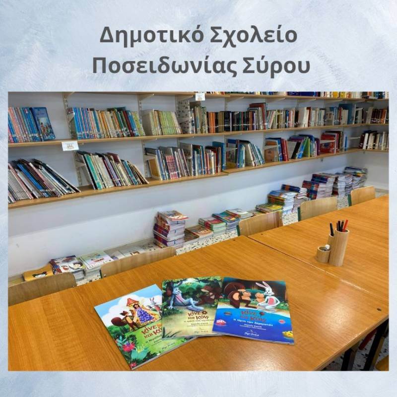 Ο Κίνε και ο Κόνι ταξίδεψαν με μεγάλη χαρά στη Σύρο και τα βιβλία της σειράς “Η πρώτη τους Περιπέτεια”, “Η Λίμνη των Ζαχαρωτών” και “Η Νεραϊδοδροσούλα” κοσμούν τη δανειστική βιβλιοθήκη του Δημοτικού Σχολείου Ποσειδωνίας της Σύρου και είναι έτοιμα να ταξιδέψουν σε ακόμα περισσότερες παιδικές αγκαλιές. Ένα μεγάλο Μπράβο στο Σύλλογο Διδασκόντων, τη διευθύντρια του Δημοτικού Σχολείου Ποσειδωνίας κα Κωνσταντίνα Τσοπάνη, τον Υποδιευθυντή και Υπεύθυνο βιβλιοθήκης κο Καραγιάννη για την πολλή όμoρφη βιβλιοθήκη που διατηρούν ενισχύοντας τη φιλαναγνωσία και το ταξίδι στις τέχνες με οδηγό τη Φαντασία.